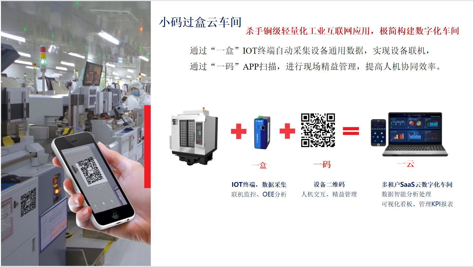 可(kě)兼容沖壓、注塑、機加工(gōng)等所有(yǒu)工(gōng)序自動化設備進行聯網采集,通過燈塔信号、設備機械運動信号、PLC控制信号、外置傳感器信号等方式,進行設備狀态采集、模拟、計算,達成數字化車(chē)間